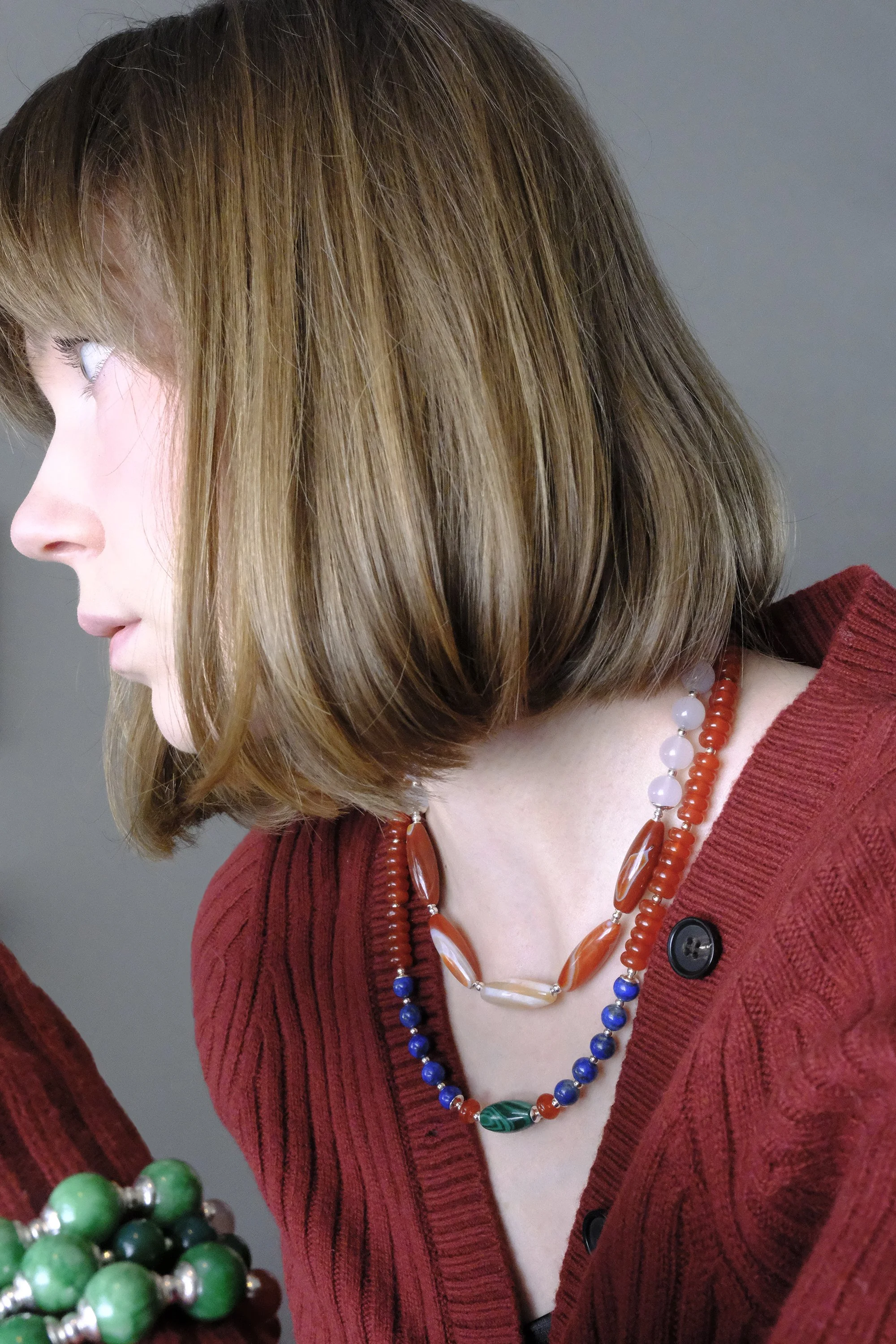 KATRA jewelry is designed to be layered, creating combinations in natural stone that feel both effortless and distinctive. Each piece is made to stack perfectly, building a rich, finished personal look.